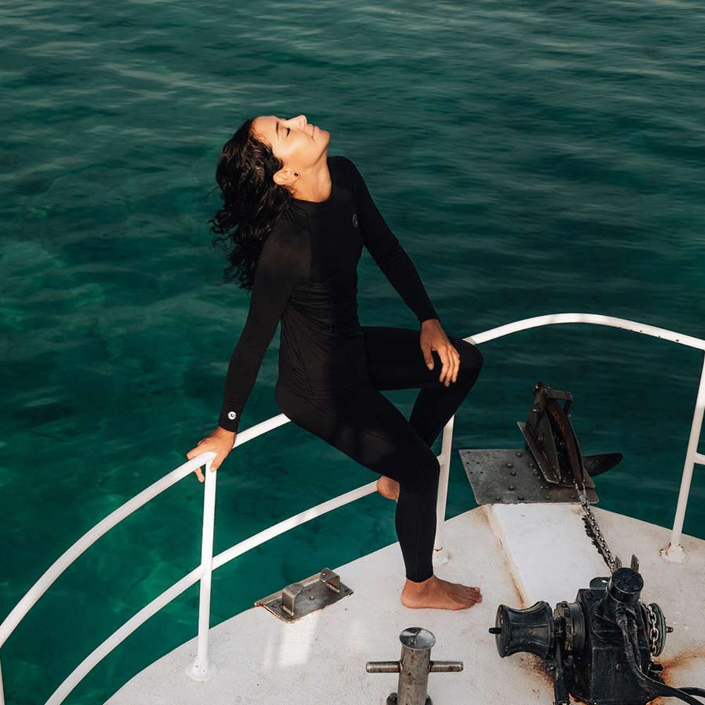 This simple, close fitting garment, with super flat seams and soft waistband creates a dry zone next to the skin, offering better thermal protection for extended use under a drysuit. The classic Fourth Element J2 Leggings now comes in black. Pair it with the Fourth Element J2 Baselayer Long Sleeve Top or Fourth Element J2 Baselayer Short Sleeve Top with the Fourth Element Baselayer Bra Top underneath, your options are limitless.